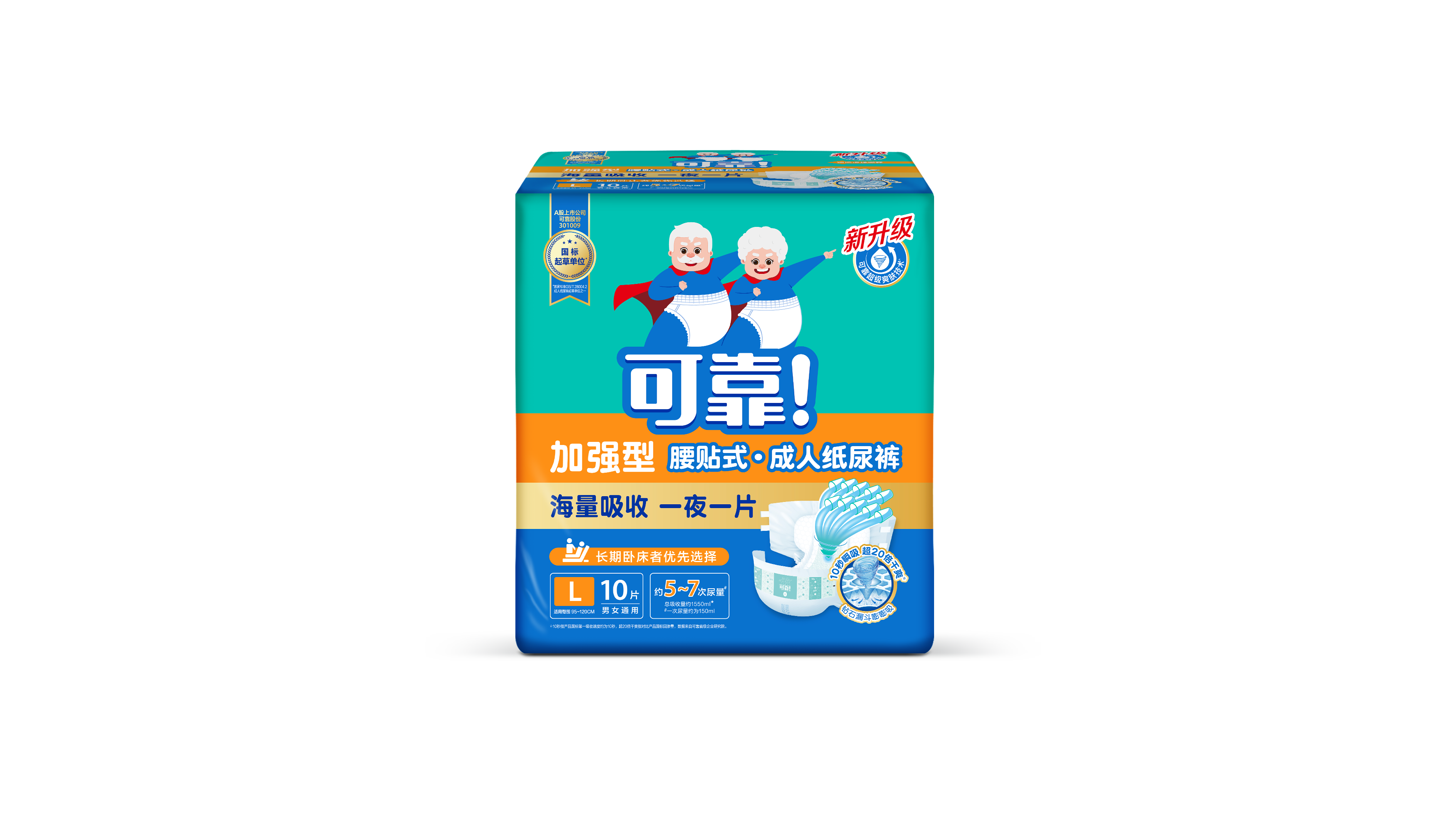 2020年,可靠股份针对线下渠道研发了特级金装吸收宝产品系列,该系列独有的人性化专利防背漏技术和加原柔棉工艺,洞察中重度失禁用户需求痛点,加强防漏加大吸收,满足消费者的多样化需求。
