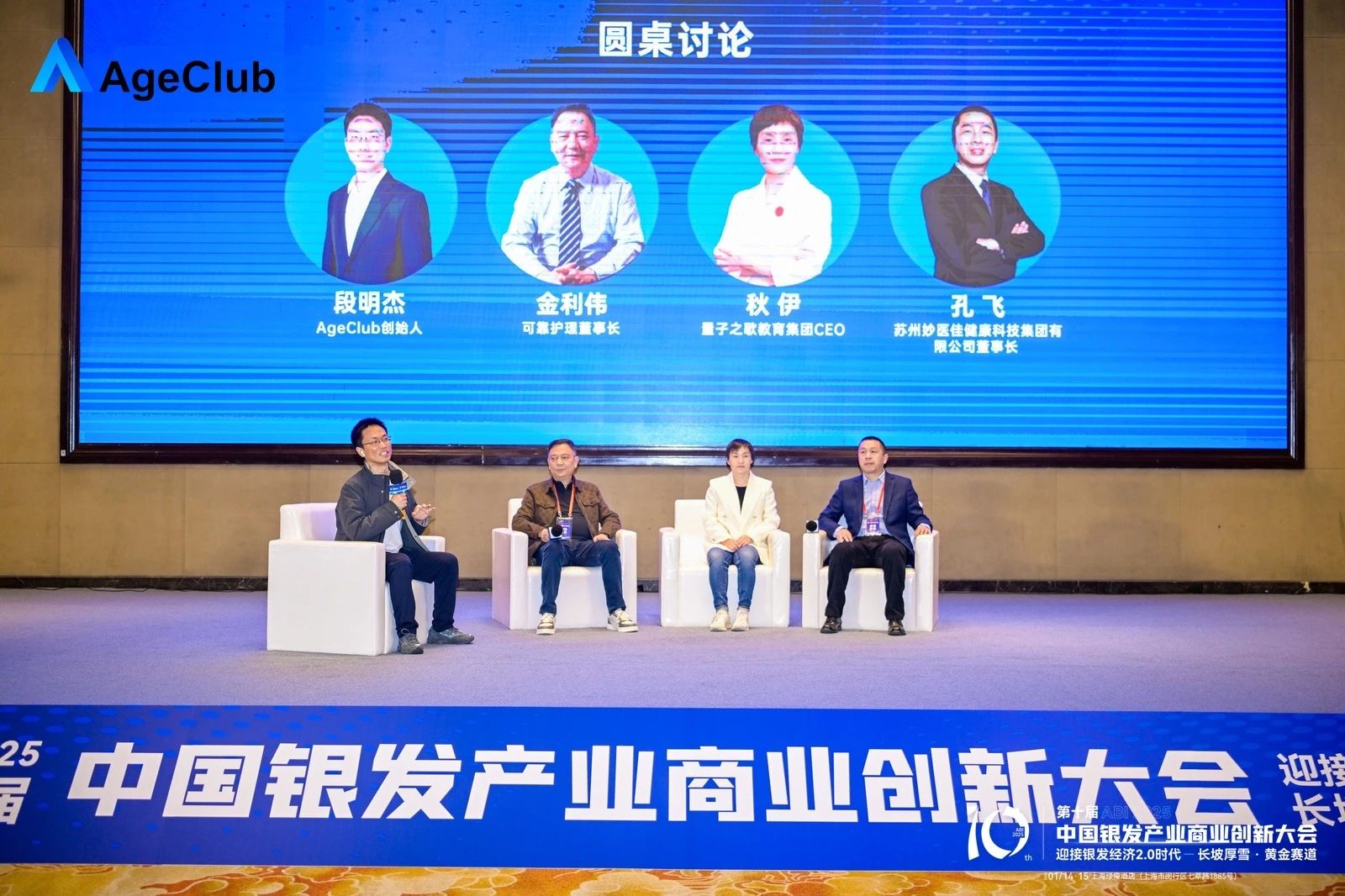 2025年初,《中共中央国务院关于深化养老服务改革发展的意见》发布,标志着我国银发经济发展再登新台阶。银发经济作为未来持续高增长的黄金赛道,其广阔的市场空间吸引了众多企业家、创业者、学者、社会组织和各界的关注。1月14日下午,创新大会迎来了令人瞩目的圆桌论坛环节,可靠股份董事长金利伟、AgeClub创始人段明杰、量子之歌教育集团CEO秋伊、妙医佳健康董事长孔飞就银发经济的发展机遇进行深入探讨,分享了他们对行业的前瞻认知及布局实践。