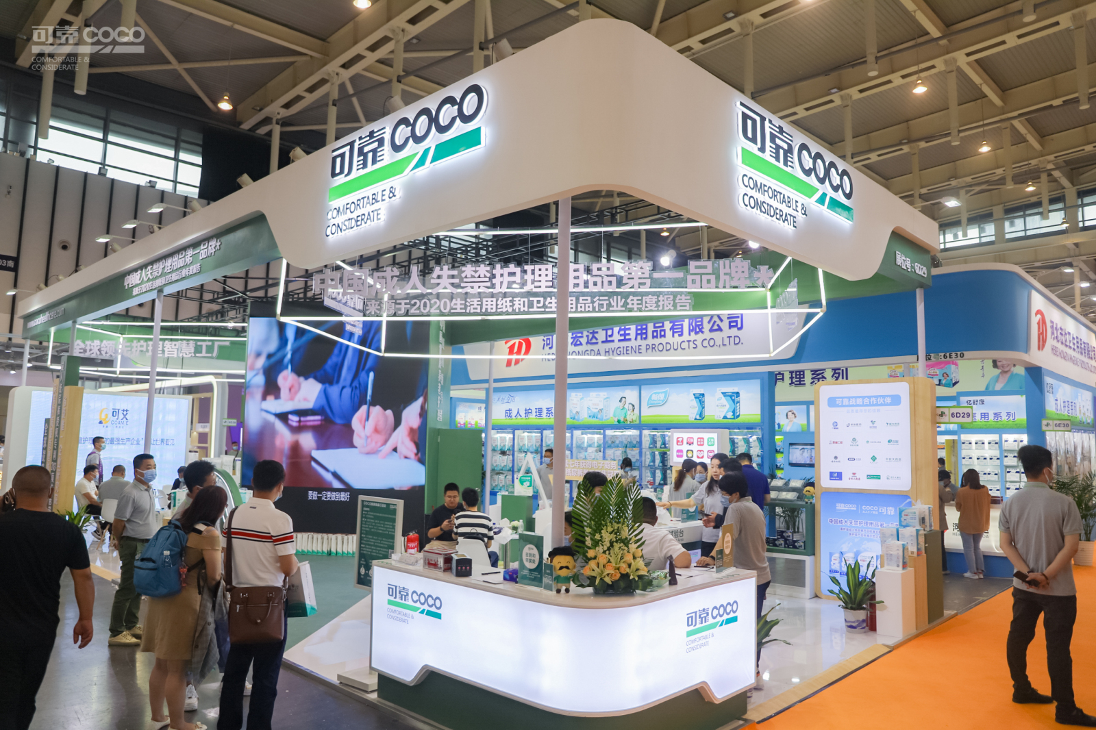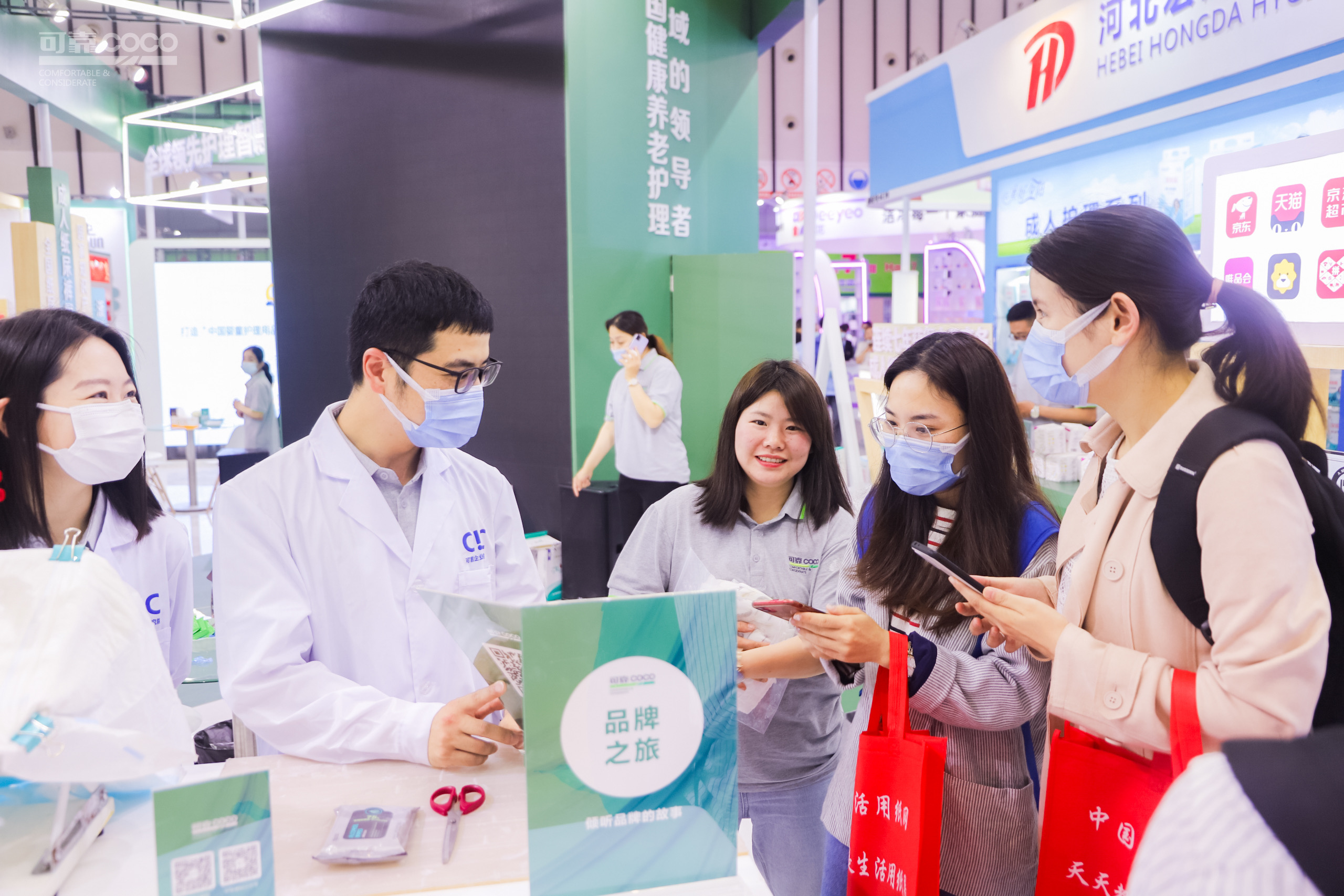 可靠成人失禁护理用品展位分为:品牌之旅、smart工厂之旅、认识成人护理、见证品质试验四大板块。展示的产品涵盖:可靠医护级产品、可靠械字号产品、可靠医疗产品、可靠中重度护理成人纸尿裤、可靠轻失禁护理产品、可靠清洁护理产品、可靠健康防护产品等。