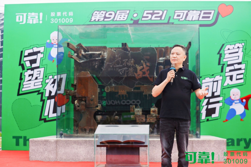 随后,董事长金利伟上台发表致辞,与大家回顾了九年前的那场灾难。金董表示,“正是这样的磨难,才锻炼出了可靠人越是面临危机越能够突破成长的力量,也正是这样的挫折,才让可靠重获新生,成为了如今行业内首屈一指的企业。”金董的激情演讲,让“5·21精神”变得更加丰盈和饱满,也让在场所有可靠人对“5·21精神”有了更为深刻的认知。