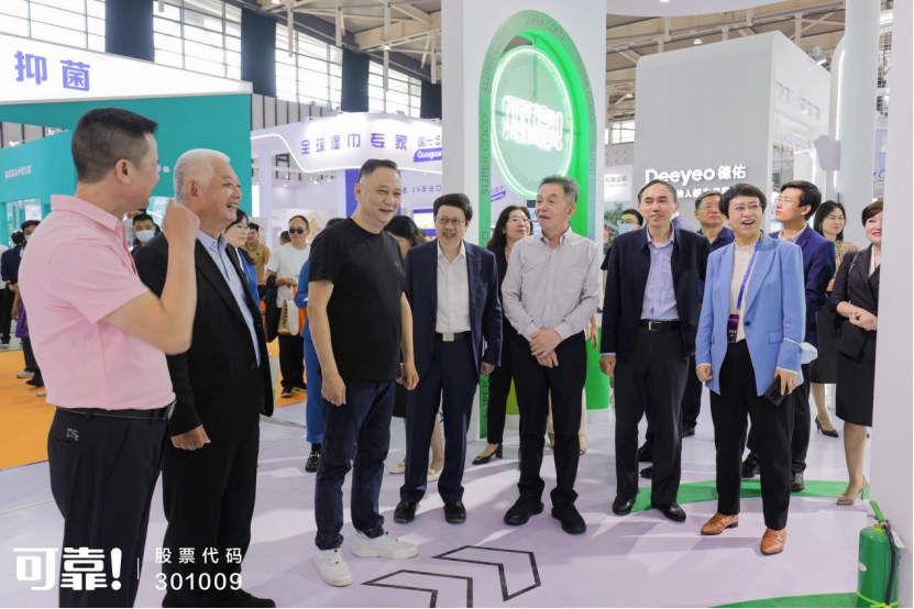 展会过程中,中国轻工集团总经理助理/中国造纸院董事长孙波及中国造纸院副总经理、生活用纸中心主任曹宝萍陪同工业和信息化部消费品工业司二级巡视员谢立安、中国轻工集团党委副书记、总经理王珂灵、副总经理姜浩等莅临可靠展区,可靠股份董事长金利伟热情接待,双方就生活用纸行业发展现状、未来趋势等方面展开交流探讨,领导们对可靠股份始终坚持产品创新和工艺创新,持续打造品牌力和产品驱动力的态度表示高度赞许。